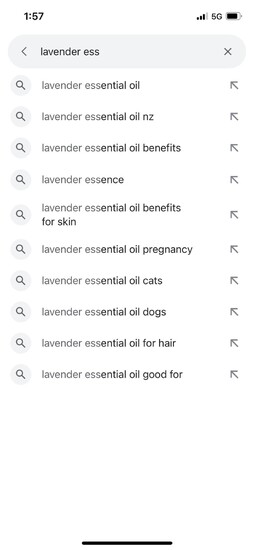 đ§ Informative blogging allows you to optimise your content for relevant keywords and phrases. By conducting thorough keyword research, you can identify the terms that your target audience is searching for and incorporate them strategically into your blog posts. This optimisation not only helps search engines understand the relevance of your content but also increases the chances of your blog posts appearing in search engine results pages. You can get keyword finder tools etc but I use my Google Insights. Make sure you have your Google Analytics set up so it's tracking where your website visitors are coming from, what they are searching to find you so you can see whats working. You can also just open Google and start a search and see what comes up for instance if I was looking for some keywords to use for a post on Lavender oil I'd start typing in lavender ess..... and then I'd read and think about all the options that come up and how I could include those in my blog post.
