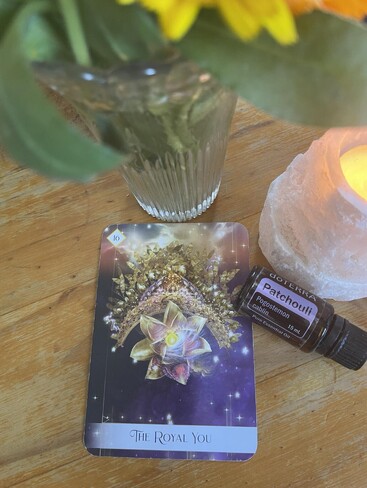 Paired with patchouli essential oil, this energy gets beautifully grounded. Patchouli helps you reconnect with your body, easing emotional tension and bringing you back to your center. It’s the perfect oil to help you stay grounded while stepping into your self-confidence. As it relaxes and decompresses you emotionally, it also realigns you with your spiritual mission, helping you walk your path with purpose and clarity. Together, this card and oil remind you to own your power, stand firm in your truth, and lead from the soul.
