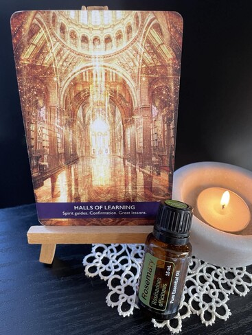 Halls of Learning Oracle Card and Rosemary Essential Oil