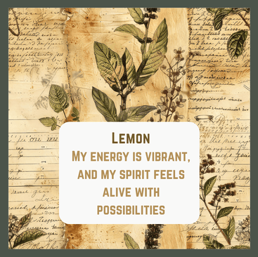 On a deeper level, Lemon is a spiritual cleanser, offering clarity that connects us to both the earthly and the divine. Its aroma deepens meditation, allowing prayers to take flight and helping us embrace life’s bittersweet moments with grace. Lemon represents the fruitfulness of the earth and reminds us to see the sweetness in life, even during challenges. It enables the entire psyche to react to love, both human and divine, with openness and joy. Pair this with the affirmation: “My energy is vibrant, and my spirit feels alive with possibilities,” and let Lemon uplift your mind, body, and soul.