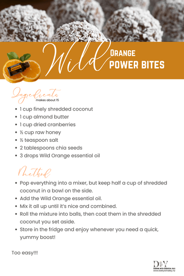 Life can get super busy, and some days, you just need a quick and easy snack to keep you going. That’s where these Wild Orange Power Bites come in! They’re perfect for those times when you or the kids need a little extra boost - whether it’s before school, after sports, or just to power through a busy afternoon.