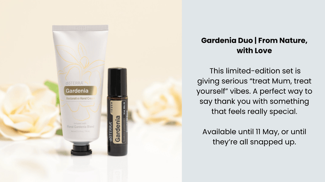 You’ll get the dreamy Gardenia Touch 10mL paired with a silky Gardenia Restorative Hand Cream (74mL), perfect for layering that floral aroma while looking after your skin. The scent is soft and elegant, like fresh flowers and warm hugs.