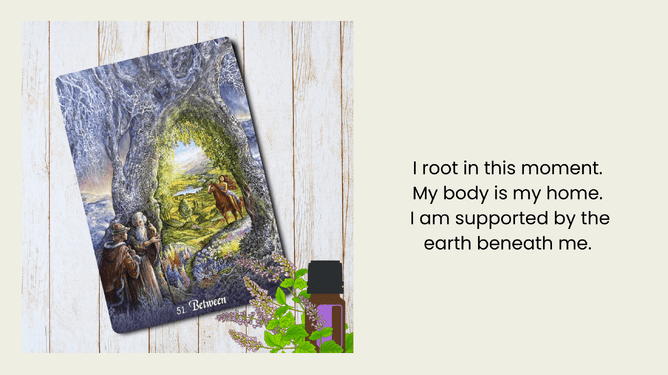 I placed a drop of Patchouli Essential Oil directly onto each of my legs and smoothed it gently in with a plain moisteriser, taking a deep intentional breath as I did, and thanking my legs for all they do for me. The space from when I tipped my Patchouli Essential Oil bottle to when the drop came out was magical - a quiet suspended place, that "in-between" where grounding happens, and it reminded me of the Oracle Card "Between" from my Gratitude Oracle Deck.