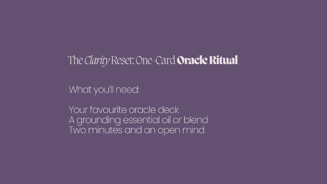 Instead of trying to “think your way clear,” try this: a one-card oracle pull to reset your mind and energy. It’s quick, simple, and surprisingly effective (especially when paired with one of your favourite essential oils, or blends).