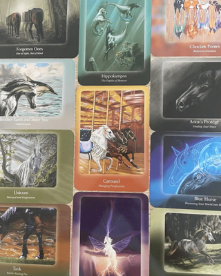 This enchanting oracle deck includes 40 beautifully illustrated cards featuring horse avatars and mythic equine guides such as unicorns, kelpies, Pegasus, and Chiron. Each card carries the soulful presence of the horse, offering gentle yet profound guidance to support your personal growth, healing, and transformation.