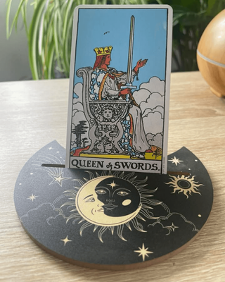 Bring a little ritual and beauty to your card practice with this moon-shaped wooden oracle card holder. Designed for those who love working with intuition, cycles, and lunar energy, this piece turns your daily card pull into a mini sacred moment.
