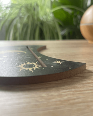 With its black finish and gold celestial detailing (stars, moons, and astrology-inspired motifs), itโs both practical and decorative, a small but special addition to your altar, bedside table, or reading nook.