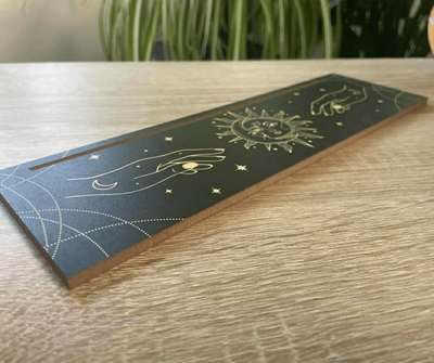 The black and gold celestial design adds a mystical feel without being over the top — it blends beautifully into any sacred space or reading setup.